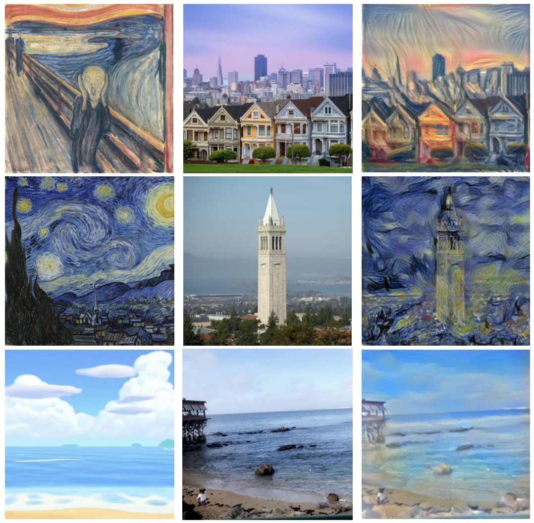 Implemented a style transfer algorithm that takes a style image and content image as inputs, and uses a deep convolutional neural network (VGG-19) to output the content image with the artistic style of the style image. Used images at each convolutional layer of the features module, normalized image tensors, and computed content and style loss. Performed content reconstruction using convolutional layers of the VGG network and performed style reconstruction using correlations between different features in CNN layers.